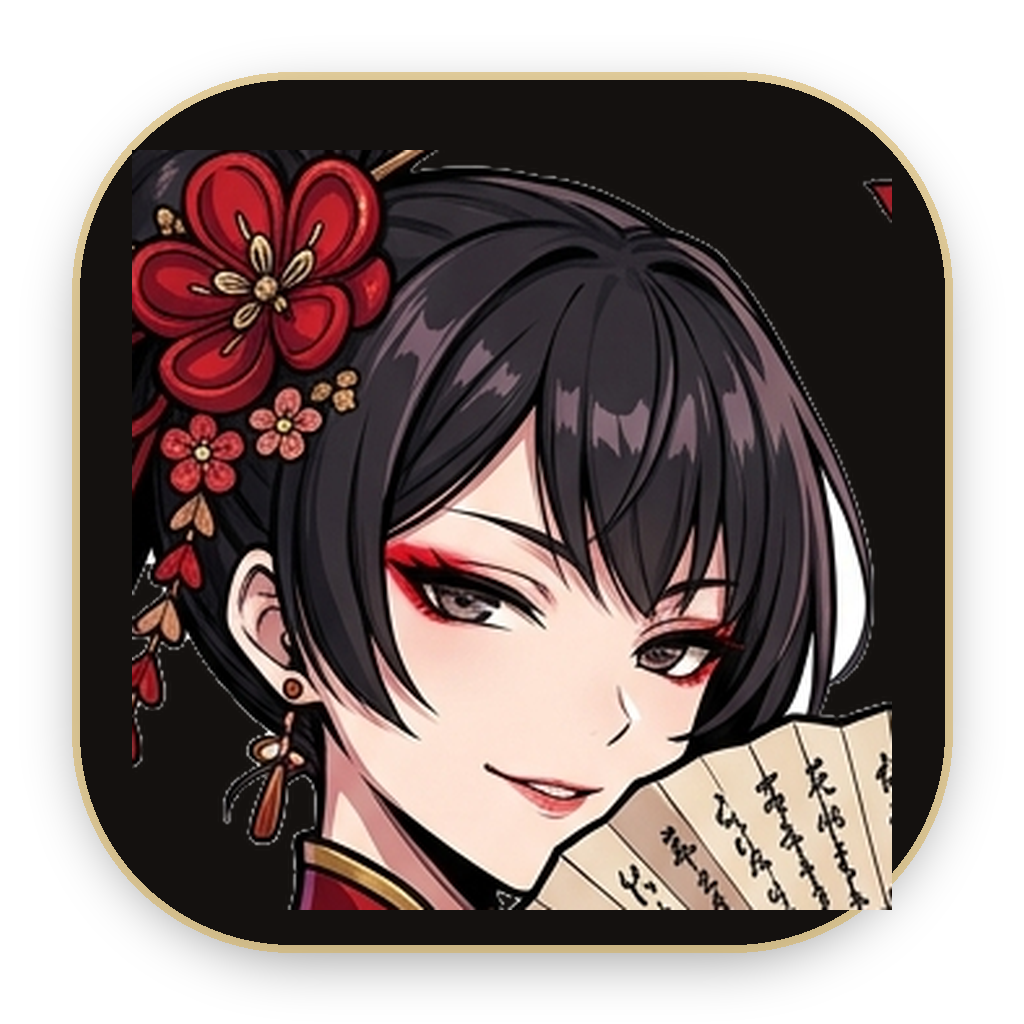 墨黒と金の重厚な美術。和紙、印章、巻物——格式ある棋院の空気を盤上に。